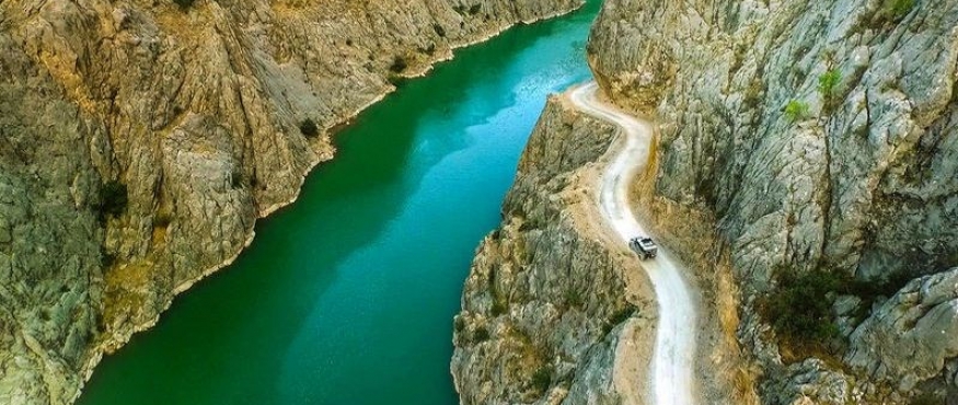 Karanlık Kanyon’u zirveden göreceğimiz noktaya kısa bir traktör römorkunda yolculuk ile çıkış yapıyoruz. Pek konforlu olmasa da yapılmasında ayrı bir renk olacağı kesin. yarım saatten daha kısa süren bir traktör yolculuğu ve ardından kısa bir yürüyüşle Karanlık Kanyonun tepesine varıyoruz. Ardından içinden Fırat Nehri'nin geçtiği Karanlık Kanyonu ve dünyanın en zorlu yolları arasında sayılan Kemaliye-Divriği arasındaki Taş Yolu’nu kuş bakışı görüyoruz.